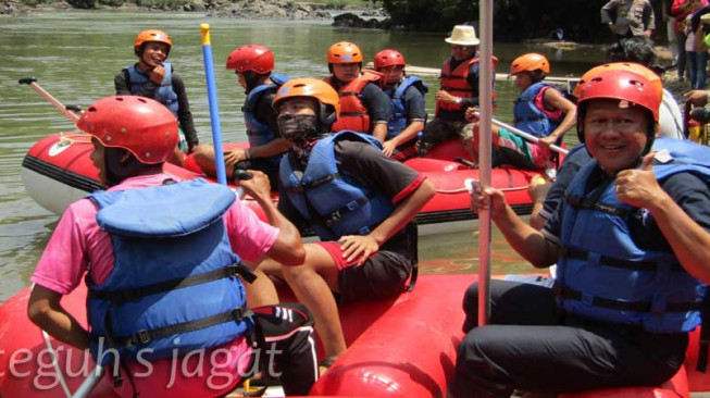 “Sambil rafting peserta bisa menikmati fosil-fosil geopark di sepanjang sungai yang dilewati,” ujar Ujang.