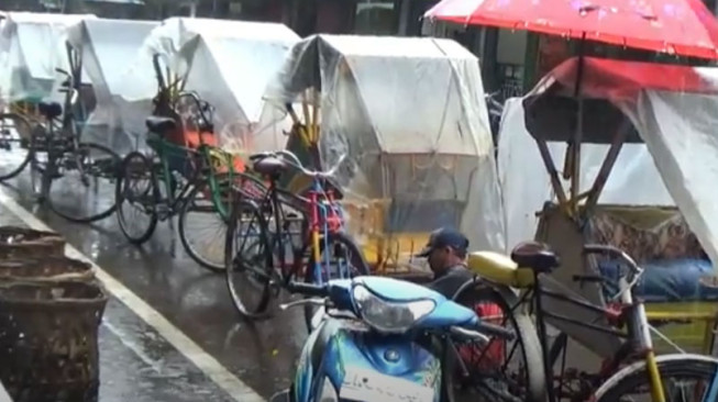 “Musim penghujan membawa berkah kami penarik becak,” ujarnya.