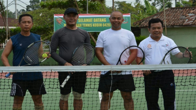 INFOJAMBI.COM - Disela-sela kunjungan kerjanya ke Kabupaten Merangin, Komandan Korem 042/Gapu Jambi, Kolonel Inf Dany Budiyanto, S.E menyempatkan diri untuk bermain tenis lapangan dengan Bupati dan unsur forkopimda Kabupaten Merangin Sabtu (29/12/2018).