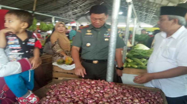 Kunjungan tersebut dimaksudkan selain bersilaturahmi dengan pedagang pasar juga untuk memantau ketersediaan bahan pokok makanan dan juga harga, yang harga-harga sembako tetap terkendali di pasar ini.