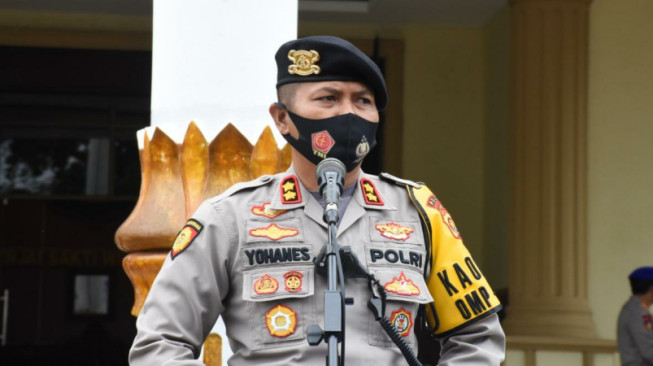 INFOJAMBI.COM - Dirsamapta Polda Jambi AKBP Yohanes W. Niti. H.N. S.I.K. memimpin apel kesiapan dalam rangka pengamanan tahap Kampanye calon Gubernur dan Wakil Gubernur Provinsi Jambi, Sabtu (26/9/2020).