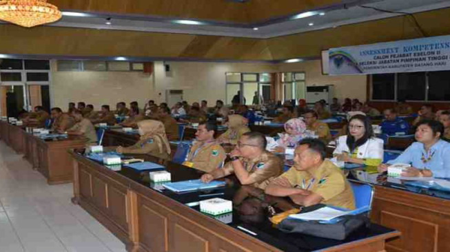 MUARABULIAN - Tahapan lelang jabatan eselon II di Kabupaten Batanghari, sudah masuk tahap assesment, 25-27 Juli, di ruang pola Kantor Bupati Batanghari.