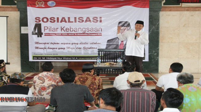 INFOJAMBI.COM - Wakil Ketua MPR Hidayat Nur Wahid (HNW), memegaskan, sosialisasi empat pilar dilakukan agar masyarakat sejarah bangsa, mengerti demokrasi dan mengimplementasikan nilai-nilai Pancasila, UUD NRI Tahun 1945, NKRI, dan Bhinneka Tunggal Ika dalam keseharian. Ada sebagian masyarakat yang menganggap demokrasi adalah bidah.