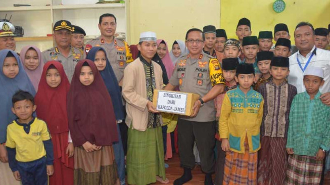 Dalam aksinya, Kapolda Jambi didampingi Wakapolda Jambi Brigjen Pol Drs Ahmad Haydar, SH, MM, Ditlantas Polda Jambi Kombespol Drs.Juni, Dirreskrimum AKBP M Edy Faryadi, SIK MH dan Kabid Humas Polda Jambi Kombespol Kuswahyudi Tresnadi, SH.SIK, mendatangi tiga panti Asuhan diantaranya Panti Asuhan Panti rifayatul bilad yang terletak di kawasan Thehok, Panti YKA bandara dan Panti asuhan Al Mahri Simpang kebon kopi, Selasa (21/5/2019).