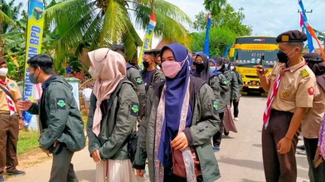 INFOJAMBI.COM - Kwartir Cabang (Kwarcab) Kabupaten Batanghari menyambut kedatangan peserta Perkemahan Wirakarya Nasional (PWN) dari provinsi Papua Barat, Kamis (02/11/2021).