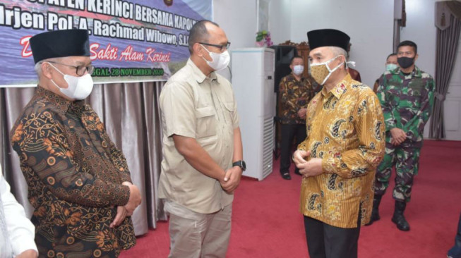 INFOJAMBI.COM - Kapolda Jambi, Irjen Pol A Rachmad Wibowo melakukan pertemuan dengan bupati dan forkopimda Kerinci, di Rumah Dinas Bupati Kerinci, Sabtu malam, 28 November 2020.