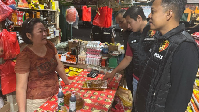 INFOJAMBI.COM --Untuk memastikan kestabilan harga pangan selama bulan Ramadan, Subdit I Indagsi Ditreskrimsus Polda Jambi mengecek langsung harga kebutuhan bahan pokok (sembako) di Pasar Angso Duo, Jambi.minggu(16/03/2025).