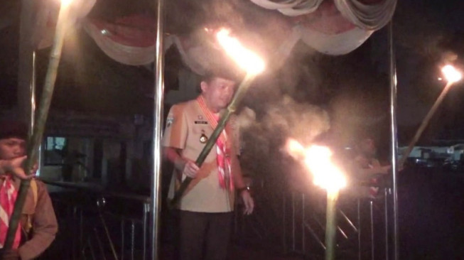Sebelumnya bupati menyerahkan nyala obor itu kepada perwakilan peserta upacara, untuk selanjutnya dinyalakan api unggun sebagai simbol rasa semangat para anggota Kwartir Cabang Gerakan Pramuka Merangin yang terus berkobar.