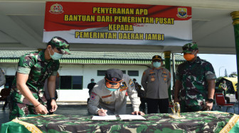 Danrem 042/Gapu Serahkan APD Bantuan Pemerintah Pusat ke Pemprov Jambi
