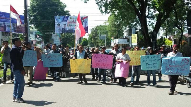 INFOJAMBI.COM - Masyarakat Kota Jambi yang menggunakan Air PDAM Tirta Mayang melakukan aksi unjukrasa dengan turun kejalan.